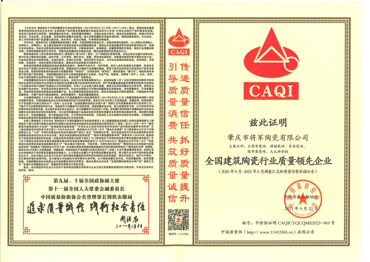 全國(guó)建筑陶瓷行業(yè)質(zhì)量領(lǐng)先企業(yè)
