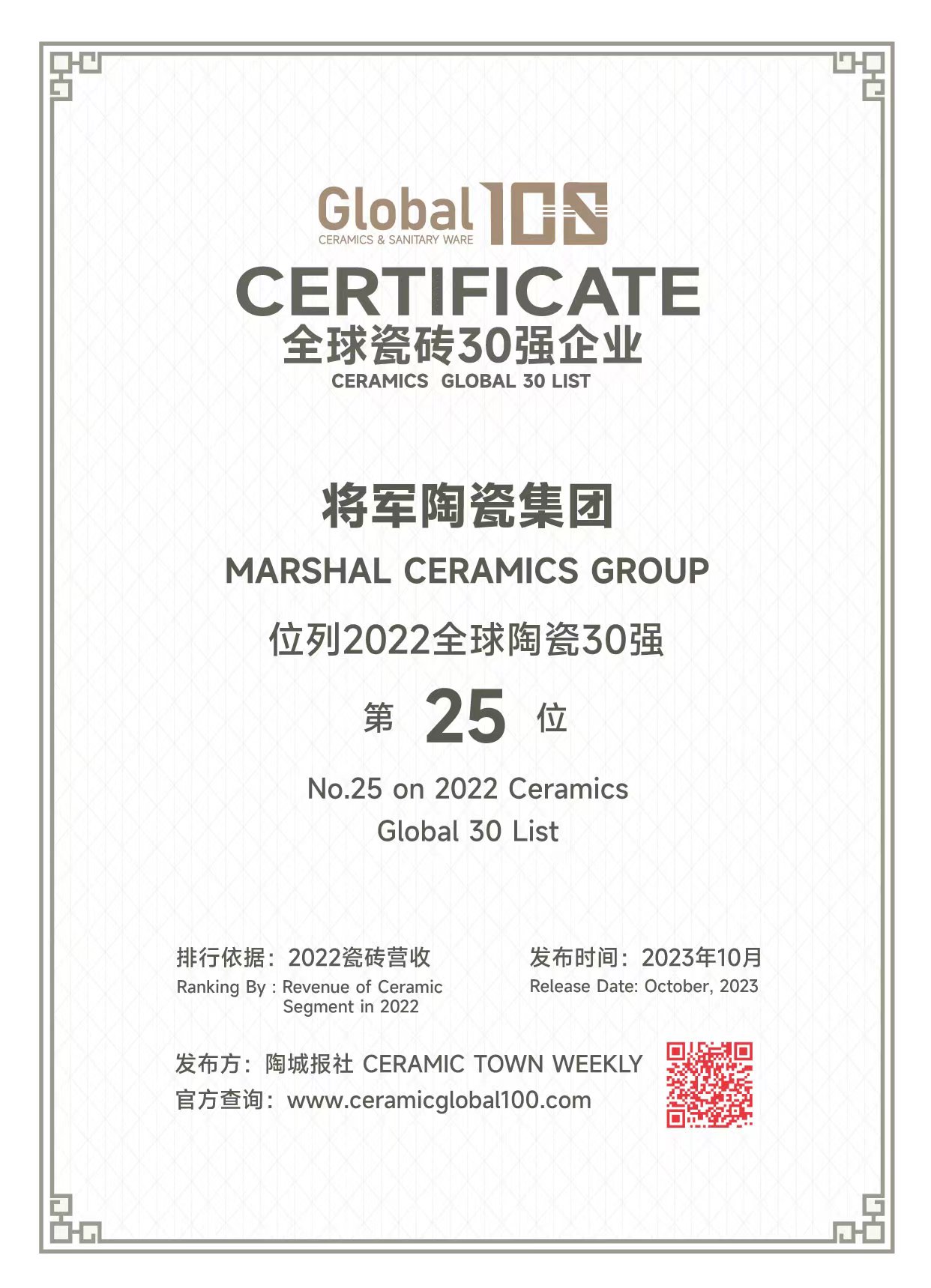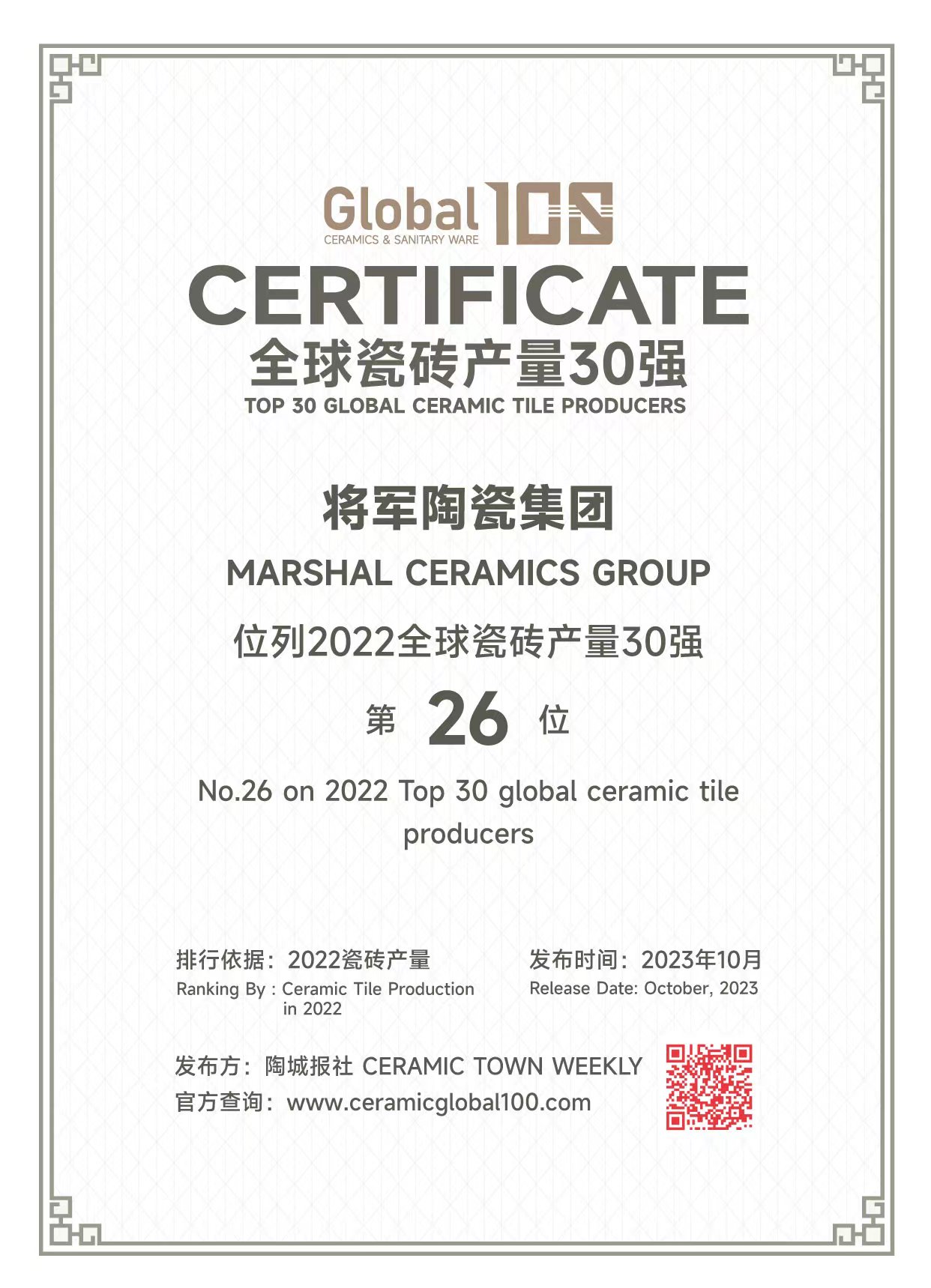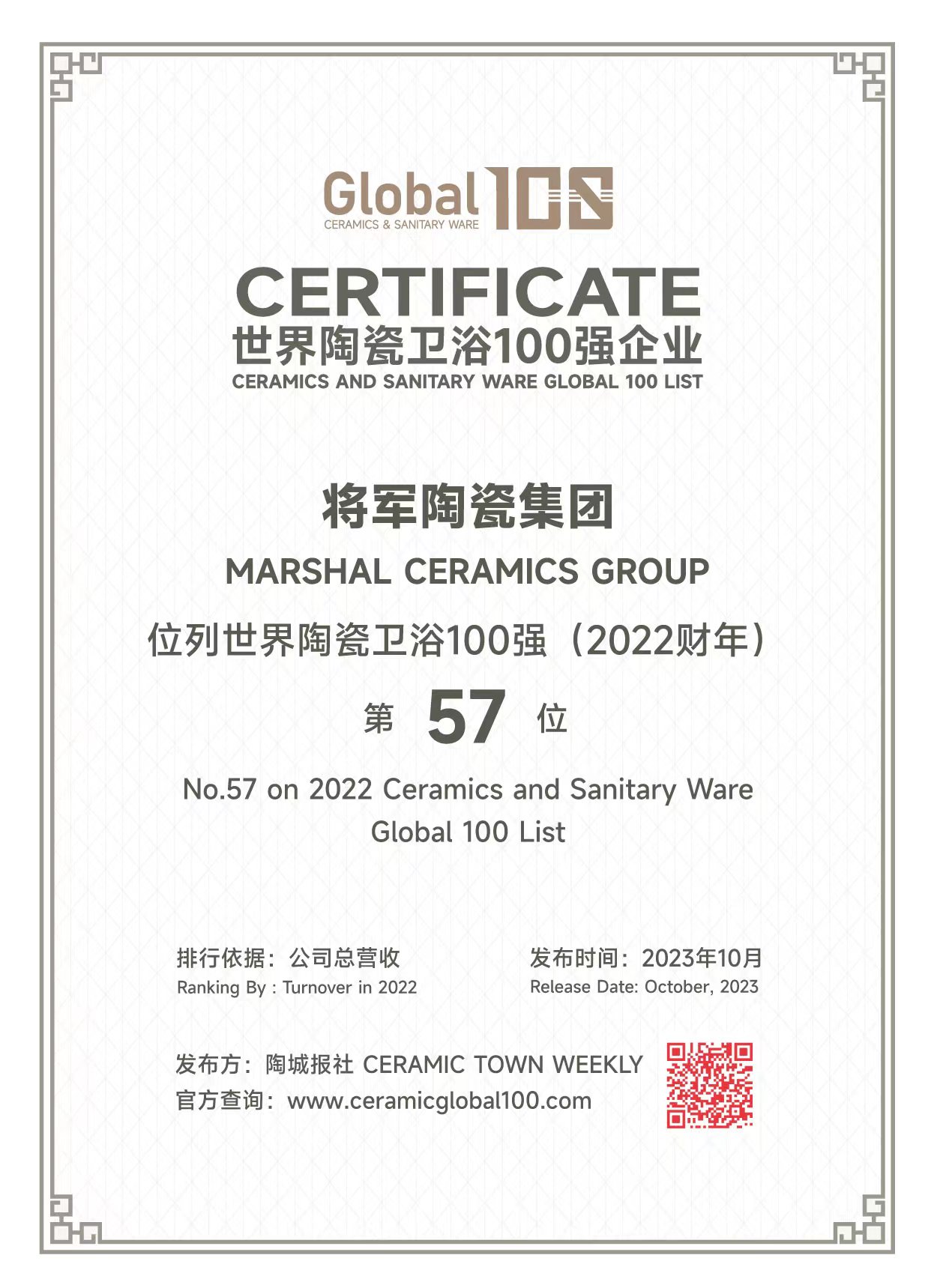 世界陶瓷衛(wèi)浴100強(qiáng)企業(yè)第57位
