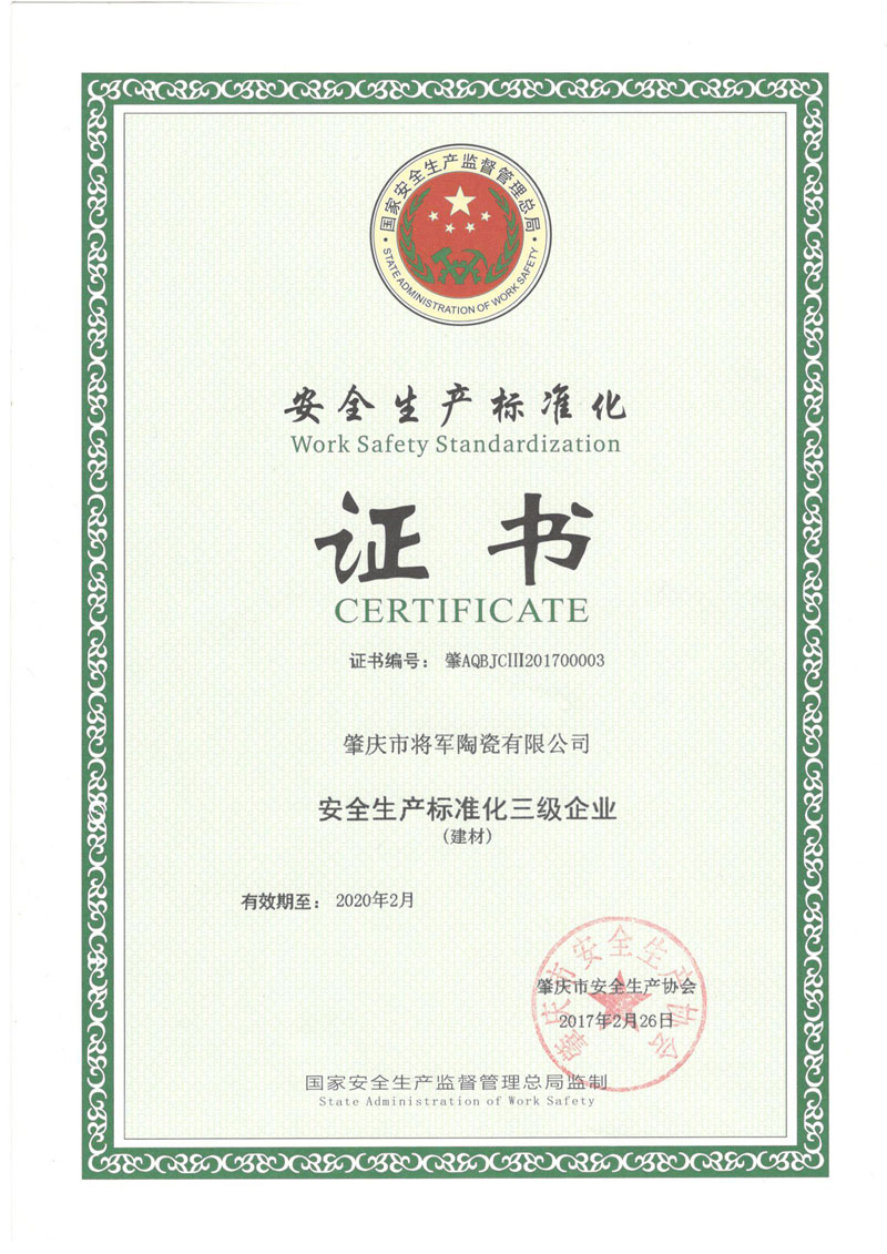 安全生產(chǎn)標(biāo)準(zhǔn)化證書(shū)