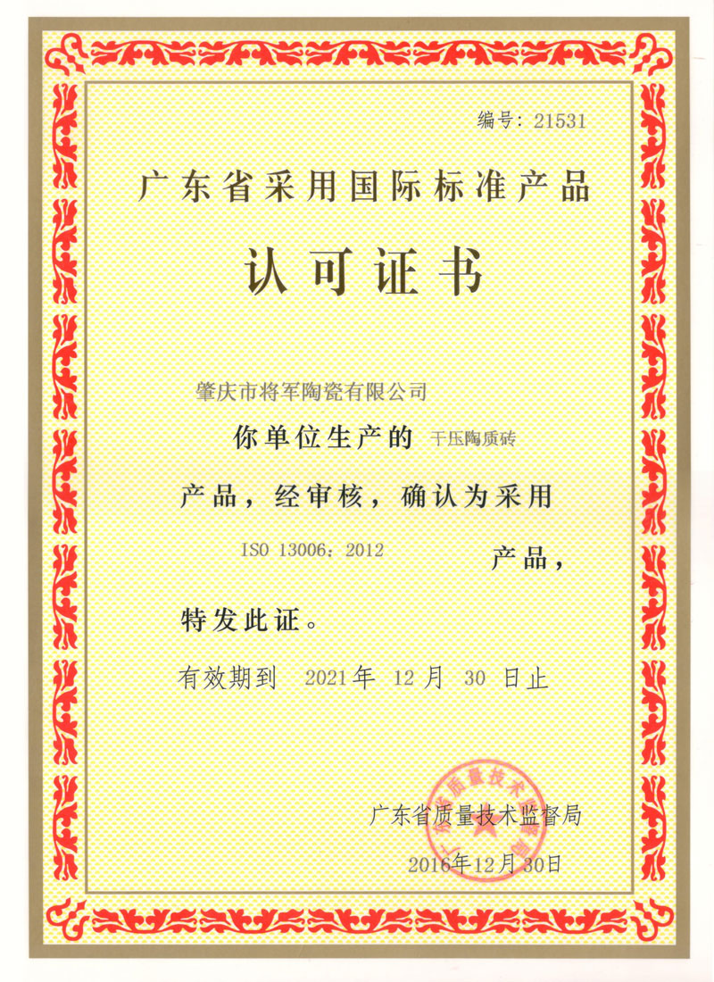 采用國(guó)際標(biāo)準(zhǔn)產(chǎn)品標(biāo)志證書(shū)