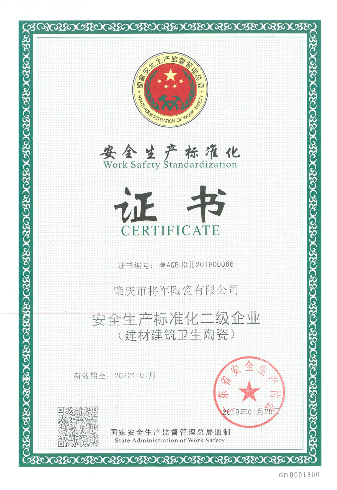 二級(jí)安全生產(chǎn)標(biāo)準(zhǔn)化證書(shū)