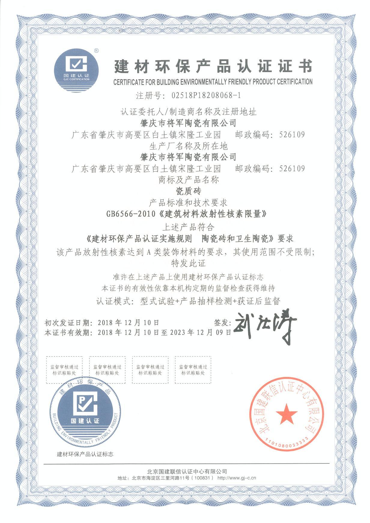 建材環(huán)保產(chǎn)品認(rèn)證證書(shū)