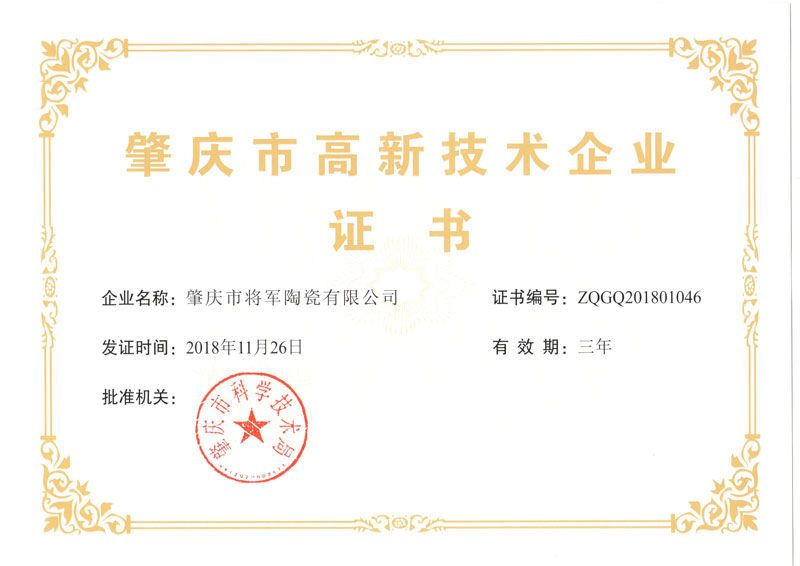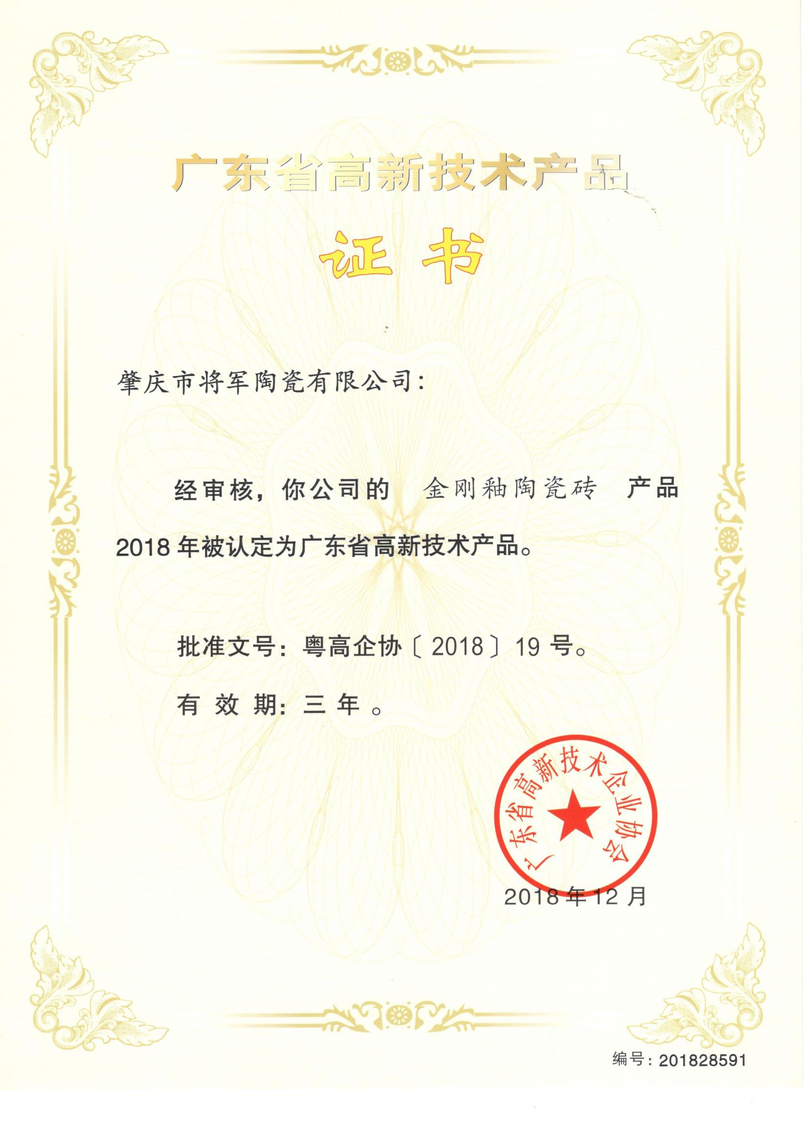 金剛釉-高新技術(shù)產(chǎn)品證書(shū)