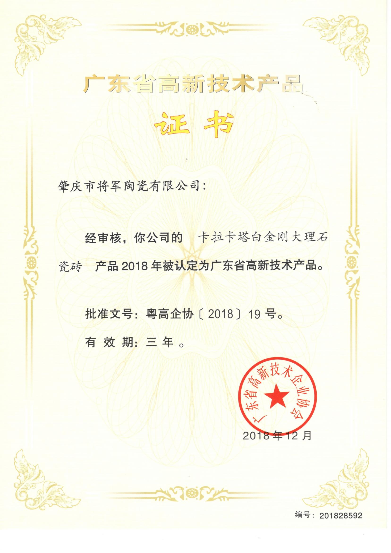 卡拉卡塔白-高新技術(shù)產(chǎn)品證書(shū)