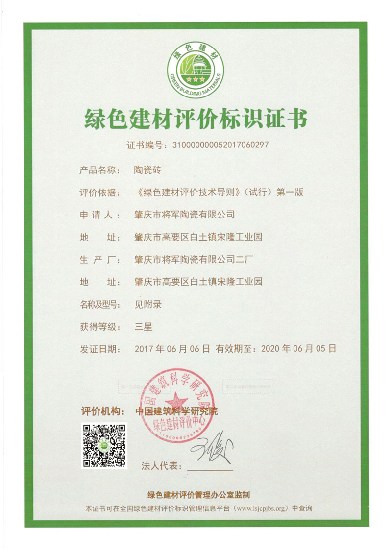 綠色建材評(píng)價(jià)標(biāo)識(shí)證書(shū)