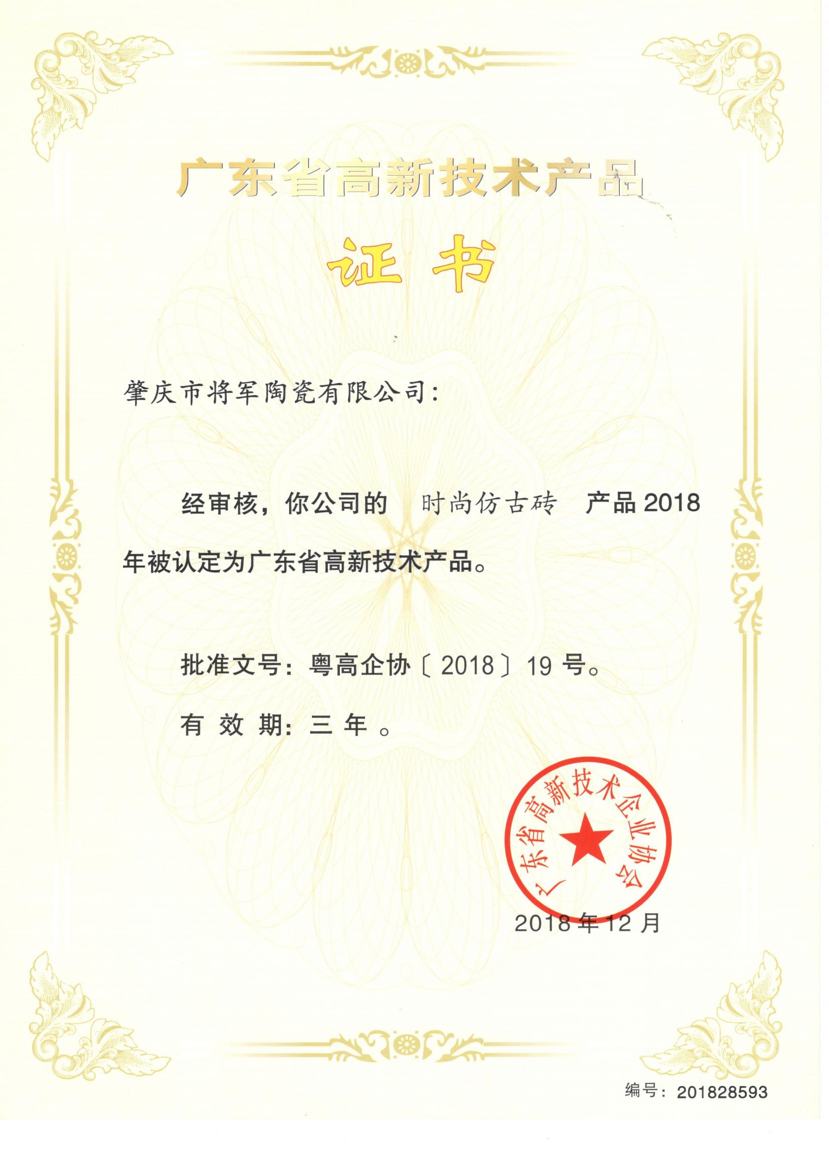 時(shí)尚仿古-高新技術(shù)產(chǎn)品證書(shū)
